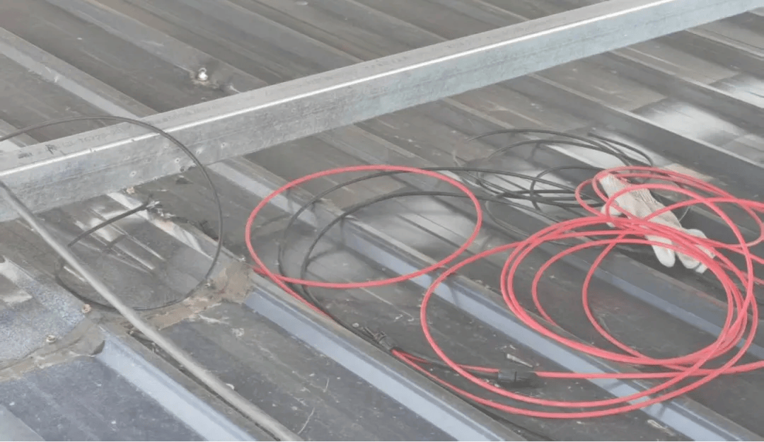 2025年6月9日,专家组对变乱现场进行勘测,现场环境如下:9号棚顶彩钢板有黑色烧孔,第一组光伏板支架下方横梁方钢有若干电击烧伤点。黑色负极曲流线一端接至光伏组串第一块负极板,另一端线头严沉烧损。红色曲流线插头,未接入组件及组串式逆变器。光伏组件已毗连。