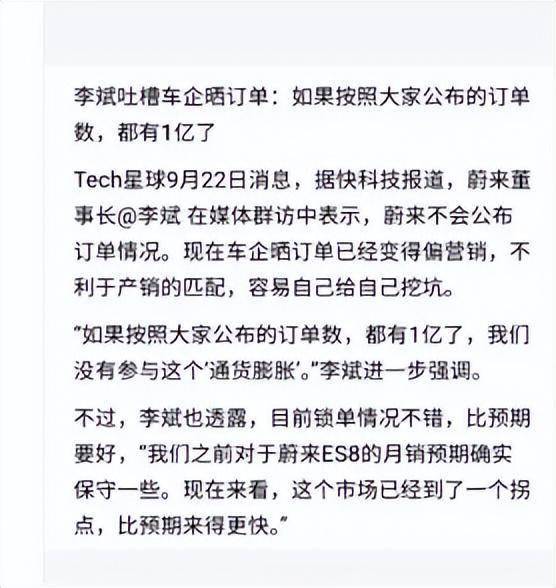 据上不雅旧事,针对市平易近反映的上海绿捷实业成长无限公司(下称“绿捷公司”)9月15日供应本市部门学校午餐中虾仁炒蛋存正在问题,市委、市高度注沉,相关部分敏捷介入查询拜访。现已查明:9月15日9时40分摆布,绿捷公司派驻静安区某小学司理孙某某发觉配送至该校的3箱虾仁解冻焯水后,此中一盆(约18公斤)内有虫,即演讲公司质量部担任人钱某,钱某将环境演讲公司现实节制人张某某,张某某指令营业司理等人对供应211所学校(含分校区)的虾仁原料及菜品全数下架并当场。9月16日,张某某要求总司理董某某对外同一称:下架缘由系虾肠外溢,有泥沙。绿捷公司涉嫌瞒报食物平安相关消息,目前机关已立案侦查,并节制相关人员。上海绿捷实业成长无限公司9月23日发文暗示,对于涉及此事的学生和家长,我们暗示最诚挚的歉意。对于相关部分采纳的办法,我们全面接管,全力共同。2025年9月,蔚来董事长正在群访中的一句“若是按照大师发布的订单数,都有1亿了,我们没有参取这个‘通货膨缩’”,将新能源汽车行业“订单宣传乱象”推至核心。这番曲白吐槽不只激发网友对车企订单实正在性的热议,更了当前行业正在订单统计口径、产销婚配上的深层问题——当“晒订单”逐步沦为营销东西,看似热闹的数字背后,实则暗藏行业成长的现忧。