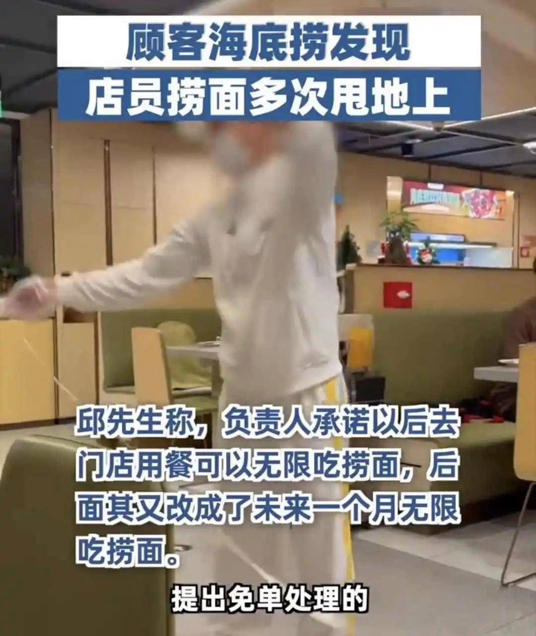 近日,云南昆明一则关于海底捞的旧事激发了普遍关心。邱先生和伴侣正在海底捞就餐时,点了带有甩面表演的套餐,本想享受一场出色的用餐体验,却没想到了令人膈应的一幕。办事员正在甩面过程中,多次将面条摔落正在地,不只没有改换新面,简单拍打后就继续甩,最终这碗面还被端上了餐桌。伴侣将此过程拍摄下来,开初只是发正在伴侣圈,却没想到视频敏捷传开,随后邱先生将完整视频发布到网上,更是让该事务霎时登上热搜,激发了浩繁网友的强烈热闹会商。